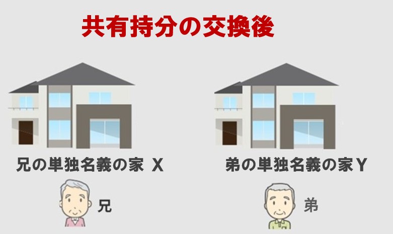 - 交換後に共有状態が解消する(単独名義にする)