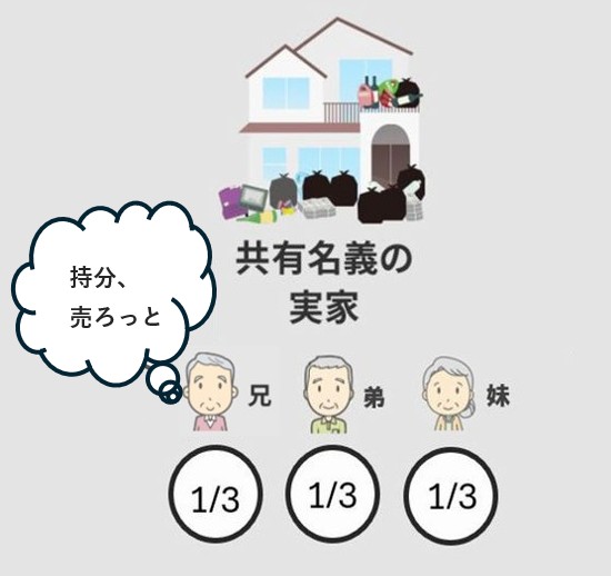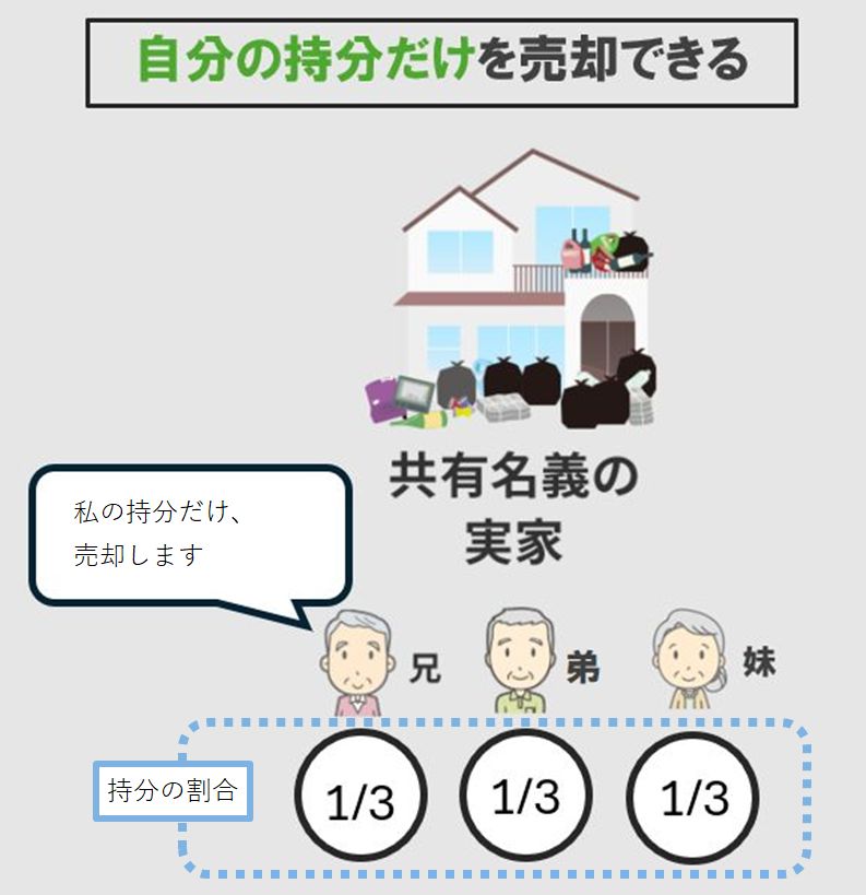 例えば、両親が亡くなり兄弟3人で実家を3分の1ずつ等分で相続した場合に、3分の1だけ売却することができます。