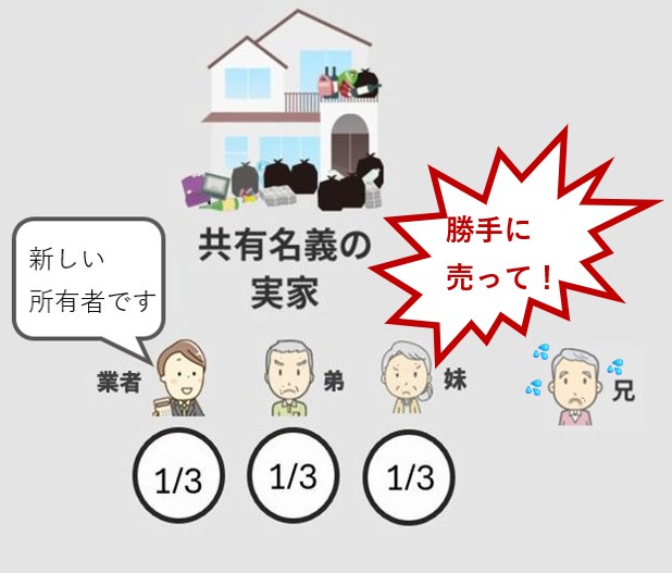 ①持分の売り手と買取業者、②持分の売り手と他の共有者、③買取業者と他の共有者の間で、トラブルになることがあります。