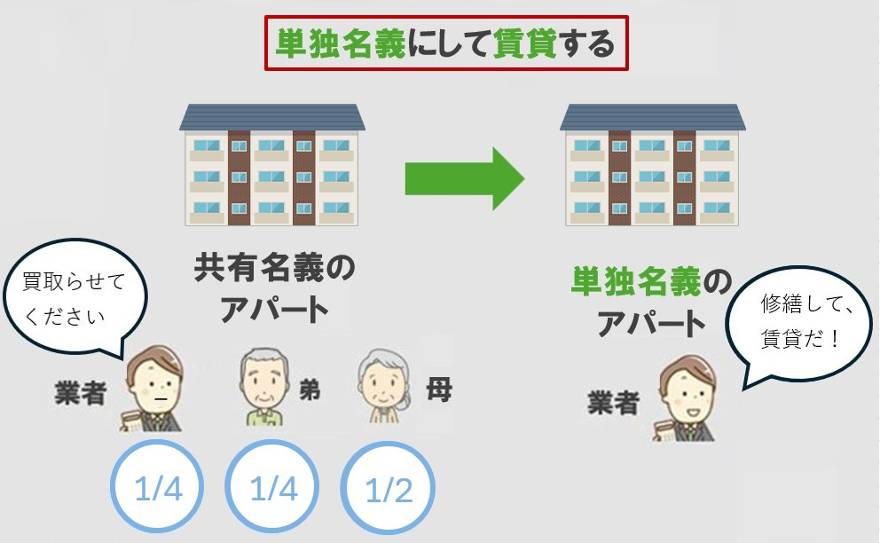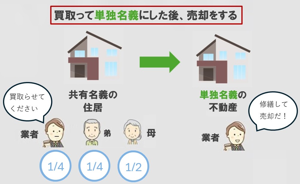 そのため共有持分を取得した買取業者は、全体の所有権を得るために、他の共有者の持分も購入して単独名義にし、リフォームをして再販するなどの活用をします。