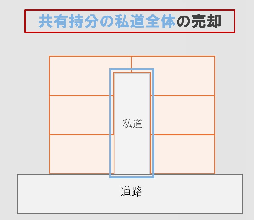 • ①「私道の共有持分」と「私道に接する不動産全体」の売却