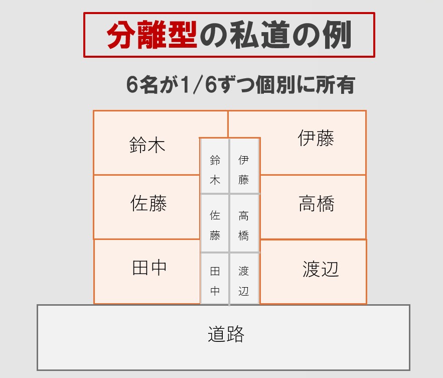• 分割型(相互持合型)…1つの私道を分筆し、単独名義で所有している状態