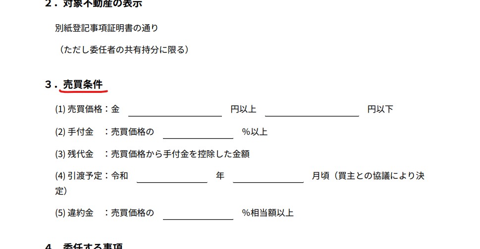 売却条件を具体的に記載します。