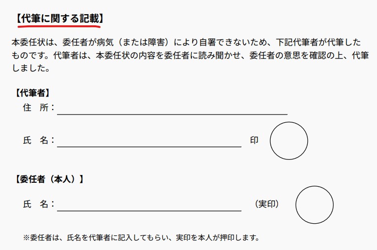 • 代筆者の住所・氏名・押印