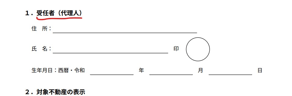 続いて手続きを代行する受任者の情報を記載します。