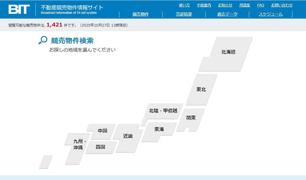 競売物件は、BIT(不動産競売物件情報サイト)というサイトで公開されています。