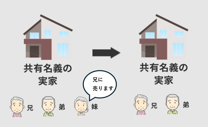 例えば、兄弟と妹で持分3分の1ずつの実家があり、妹が放棄する場合、妹は兄弟に放棄の意思を表明した後、3人で共同で持分移転登記をします。