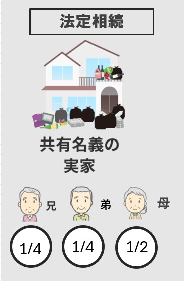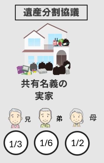 例えば、実家を母と兄弟2人の3人で相続する場合に遺産分割協議をして、持分を母2分の1、兄3分の1、弟6分の1にするといったことです。