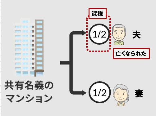 共有名義の場合の相続税の対象は、不動産全体ではなく、被相続人(亡くなった人)の持分だけです。