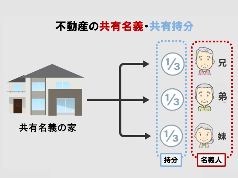 共有名義とは、1つの不動産に対して、複数の共有者が登記している状態のことです。