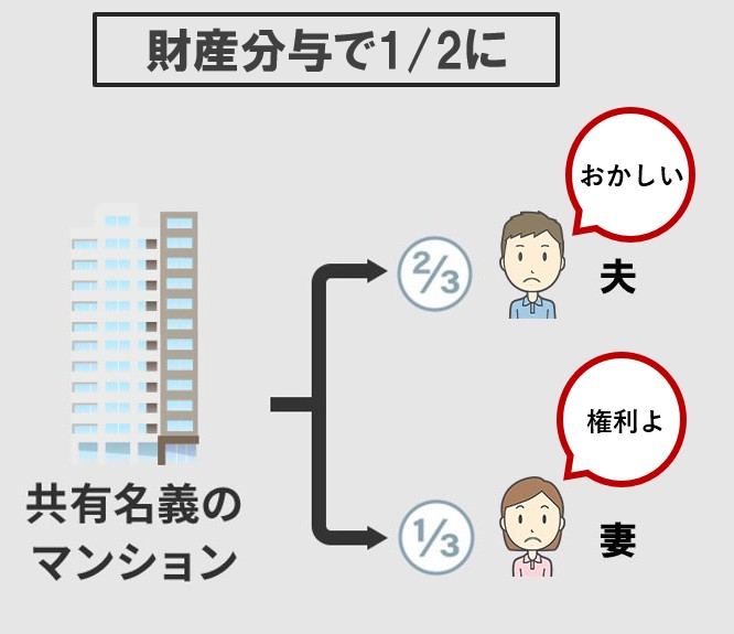 例えば、夫婦の共有名義で6,000万円のマンションを購入し、夫が4,000万円、妻が2,000万円出している場合、持分は夫3分の2、妻3分の1の割合です。