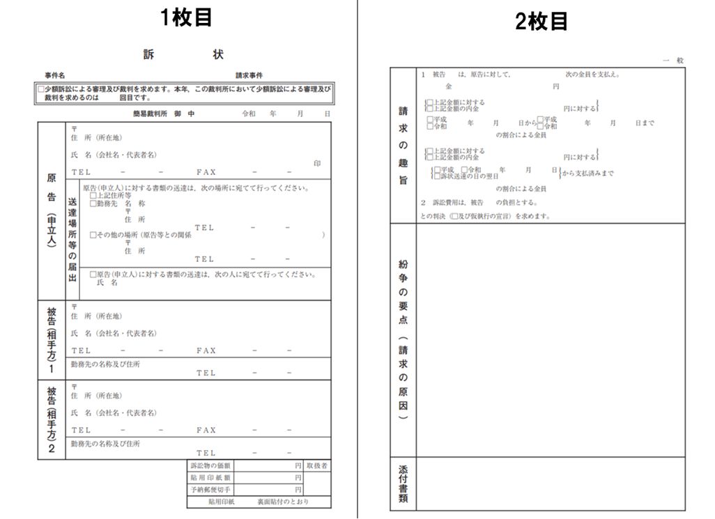 画像引用)裁判所「金銭支払(一般)請求の訴状の書式」
