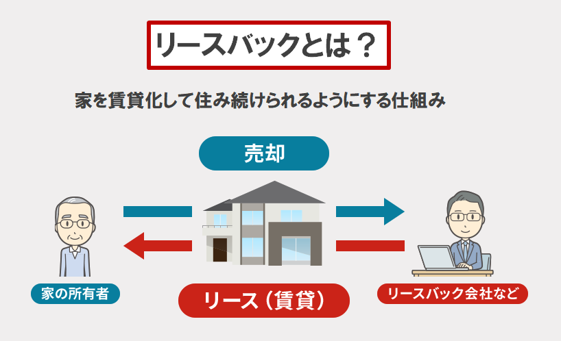 リースバックとは、不動産を一度売却して、その後に買主と賃貸契約を結び、引き続き住み続けられる仕組みのことです。